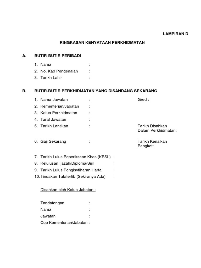 Borang Lampiran D Senarai nama barang-barang makanan dan harganya c. Lampiran D - Borang Permohonan Kelulusan KSUJPA bagi Skim Perkhidmatan Berbeza dan pelangkauan melebihi 2 Gred dalam format words on 20181217 40000 1437. Borang Lampiran C Butir-butir peribadi maklumat Syarikat Bahagian AB b.