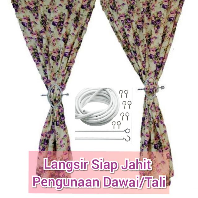 Langsir Tingkap Siap Jahit Pakai Dawai Tali 95 150cm Shopee Malaysia