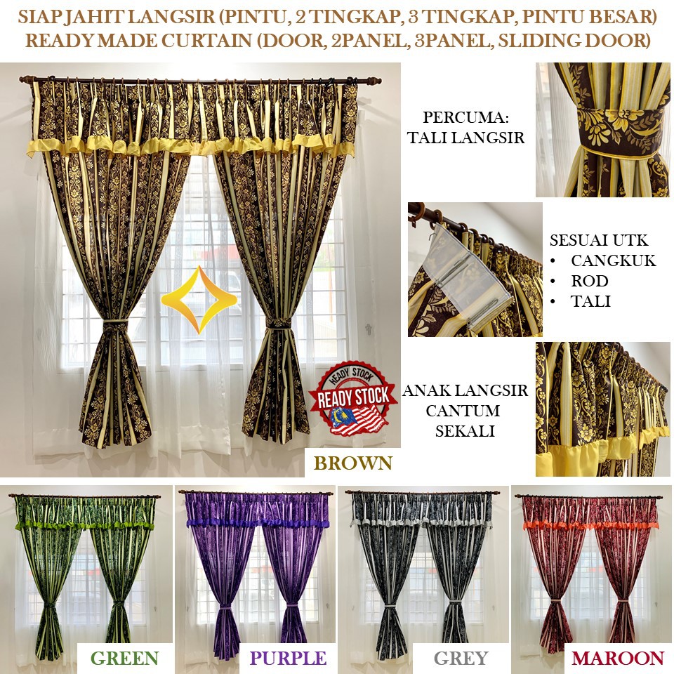 Langsir Siap Jahit Free Tali Pengikat Ready Made Curtain Free Tieback Langsir Sliding Door 2 Panel 3 Panel Pintu Bilik Shopee Malaysia