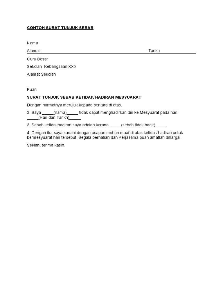 Surat Tunjuk Sebab Tak Hadir Mesyuarat Pdf